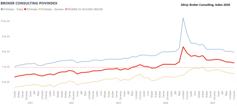 Při pohledu na posledních pět let je vidět, že se cena za tento typ pojištění postupně zvyšovala. V prosinci 2021 zaznamenal Broker Consulting Index hodnotu 6 463 Kč, v roce 2022 pak vzrostla na 6 725 Kč a v prosinci 2023 na 7 137 Kč. V prosinci 2024 se index dostal nejvýš za sledované období – na 7 898 Kč. Letošní prosinec však přinesl obrat v dosavadním vývoji, když hodnota indexu klesla na 7 257 Kč.