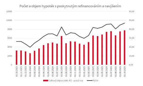 Podle odhadů trhu se v následujících třech letech bude refinancovat přibližně 1,4 bilionu korun. Při průměrné výši hypotéky kolem 3,6 milionu korun v roce 2022 to odpovídá zhruba 130 tisícům refinancovaných hypoték ročně. Jde o velmi významný objem, který může ovlivnit konkurenční prostředí na hypotečním trhu.