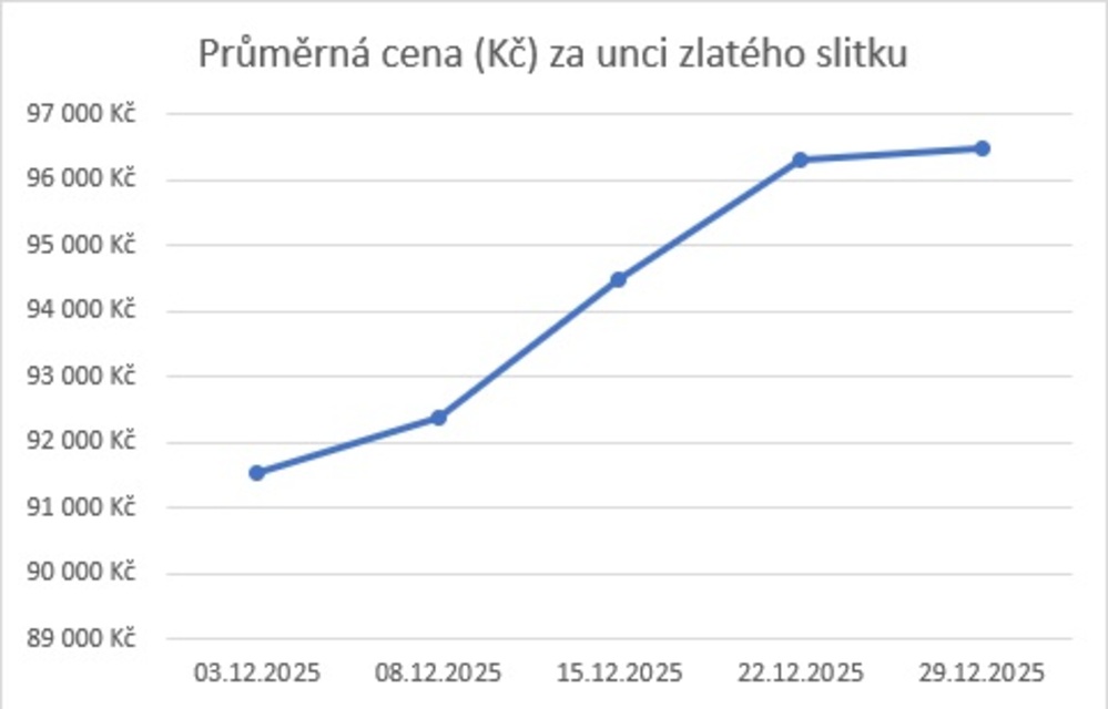 Vývoj ceny zlata na tuzemském trhu za prosinec 2025