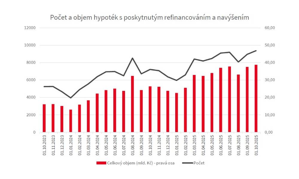 Vývoj počtu a objemu hypoték v letech 2023 - 2025